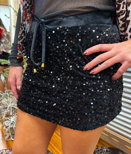 The Velvet Hour Sequin Skort in black combines luxurious soft velvet with delicate black sequins that catch the light beautifully. Perfectly designed for the holiday season, this chic skort adds a dazzling touch to any festive outfit.