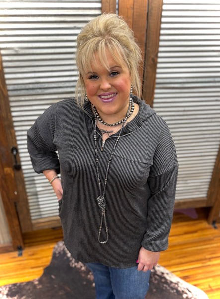 Stay cozy and stylish in this urban ribbed quarter-zip hoodie, crafted from a premium blend of 95% polyester and 5% spandex for all-day comfort and flexibility. The long puff sleeves add a trendy, contemporary edge, while the half-zip design lets you adjust your coverage effortlessly. Practical side pockets keep your essentials within reach, and the rounded hem detail completes the polished look. Perfect for layering or wearing solo, this charcoal essential transitions seamlessly from casual outings to relaxed weekends.
