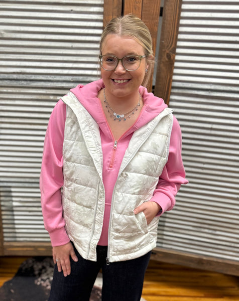 Meet the Delilah Puffer Vest—your new cozy layering go-to! It’s made to slip over your favorite long sleeve, hoodie, or mesh top with ease. Perfect for cooler fall and winter days, this vest features a full front zipper, two zippered side pockets, and a snug collar to keep you comfy and stylish all season long.