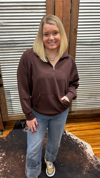 The Kayla Luxe Hooded Quarter Zip Pullover is your new go-to for cozy and casual days! Made with super soft luxe material, it’s a must-have that deserves a spot in your closet. Team it up with our Delilah Puffer Vest for a chic, comfy look that’s perfect for on-the-go adventures!